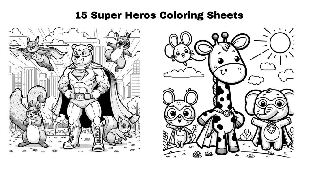 15 downloadable and printable coloring pages from my Cartoon Superheroes series. (Grouping #1)